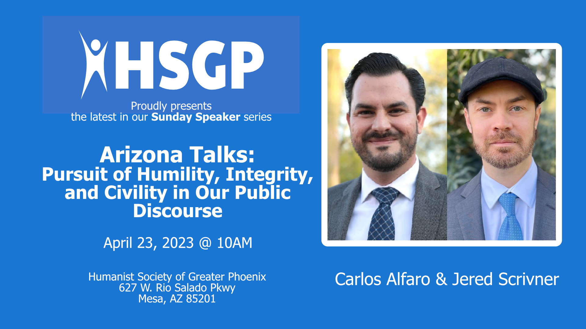 The Humanist Society of Greater Phoenix presents its Sunday Speaker meetings twice a month on Sunday mornings. Meetings are free and open to the public.